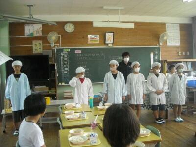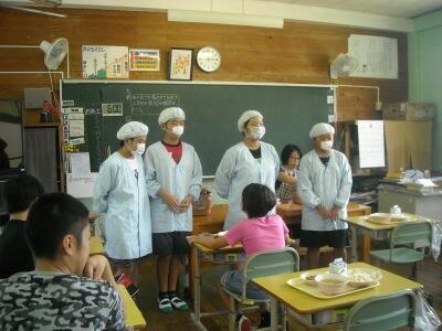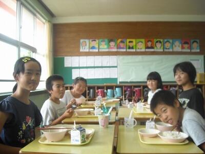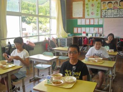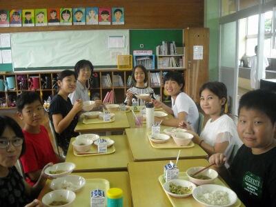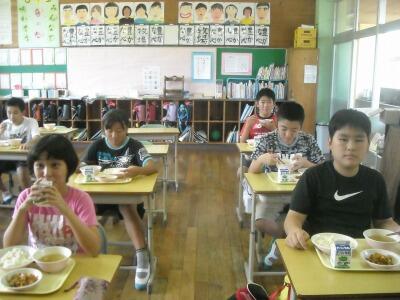 当番の仕事もしっかりとしています。給食の時間もとても和やかでチームワークの良さを感じます。