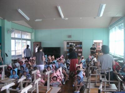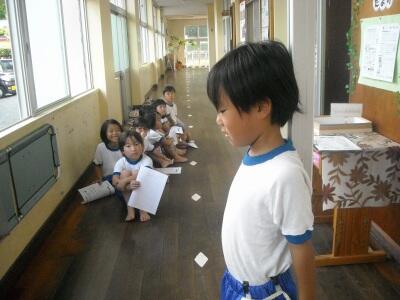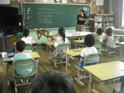 体育の時間には運動場で体慣らしの運動をしました。運動会に向けた練習は月末より本格的に始まります。チアフルタイム(総合的な学習の時間)には、6月に田植えをした田圃に「案山子」を作って立てる計画をしました。いろいろなアィデアがどのようにまとまっていくかとても楽しみです。