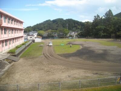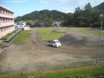 環境整備員さんが来校されて、軽トラックを走らせて、グランドの整備をして頂きました。明日から体育で徒走の計画を立てていた学年もあったので、感謝したいと思います。暑い中、本当にありがとうございました。
