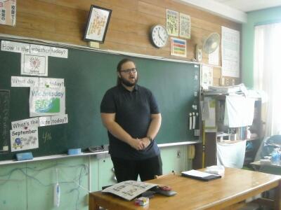 今日はALT訪問の日でした。クリスさんが4年生の前で「エーデルワイス」や「アメージンググレイス」を歌っていただきました。4年生にとってはサブライズで心に残る時間だったと思います。