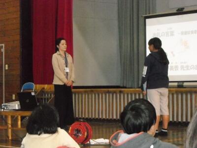 昨日は油津小の河野栄養教諭を招いて「給食感謝集会」を行いました。毎日の美味しい給食に感謝です。