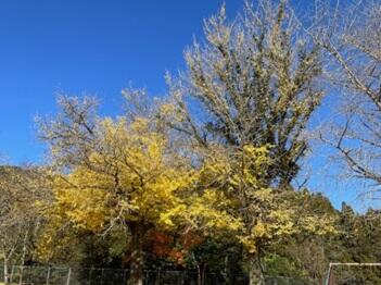 今日は校庭のイチョウの木が…ハラハラと音を立てて落葉していました。まるで、滝のように一斉に舞い散るその姿は壮観でした