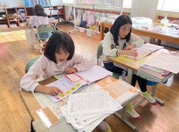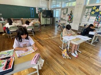 先週は欠席が多かったのですが、今日は回復して出席してきた子もいました。3・4年生の教室をのぞくと、2学期の学習のまとめをがんばっていました。