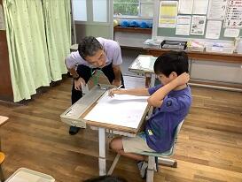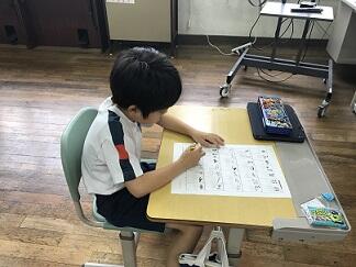 具体的には、子どもがつまずきやすい、長音、拗音、促音、拗長音などのワークシートを使った練習(トレーニング)を通して、指導・支援をしていきます。子ども達は、静かに集中して取り組んでいました。すばらしいキラキラ