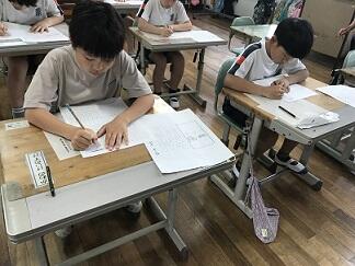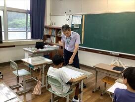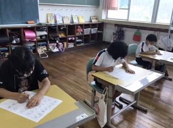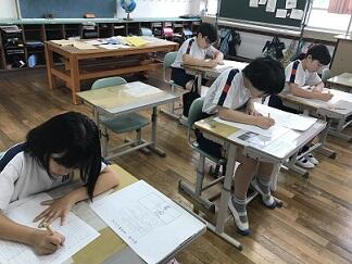 学校は、教室にエアコンが付いているので、子ども達は普段通りに静かに集中して学習に取り組んでいました。