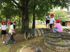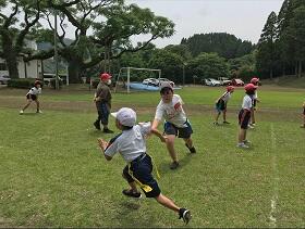 それでも、細田っ子は元気いっぱいです。今日の昼休み時間も、かなり蒸し暑くなってきましたが、外で運動遊びをめいっぱい楽しんでいました笑う