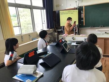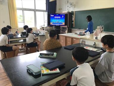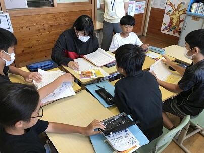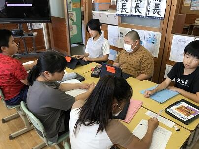 5・6年生は、理科の学習で、1人ずつ調べたことを発表し、感想を述べ合っていました。ここでも、1人1台タブレットが大活躍です笑う