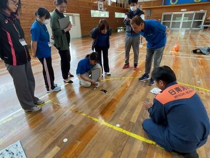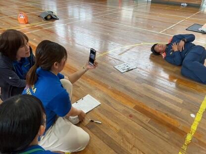 放課後は、職員研修で「救急法」を実施しました。今回は、心肺蘇生の実技、搬送法を行い、最後に「映像119番通報」をシュミレーションしました。消防署の協力をお願いし、実際に職員が「映像119番」に通報し、消防署の司令部から指示を受けたり、傷病者や周囲の状況を映像で送ったり、必要な処置の動画を視聴したり、といったやり取りをしました。119番通報は、電話で音声での情報交換しかできませんが、「映像119番」では、できることが各段に違います!! 時代は常に進化しているのだと実感しました。