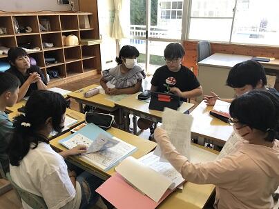 3・4年生は国語の学習をもとに、調べたことを模造紙にまとめ、ちょうど発表会をしているところでした。まとめ方も聴き方も、1学期より上手になっているなと成長を感じました.。発表の仕方もとても上手になりました笑う