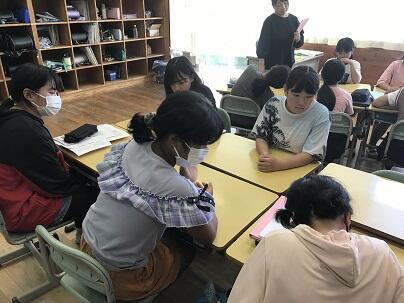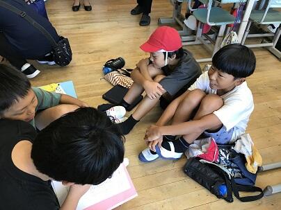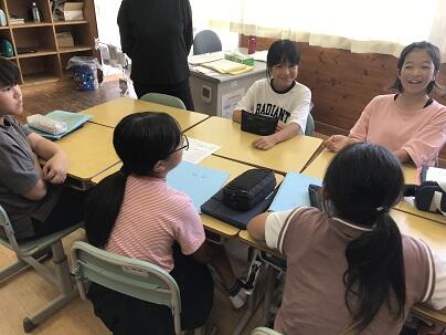 3時間目が終わるころには、みんな打ち解け合って笑顔があふれ、帰る前にはなごりおしそうな表情になっていました。日頃体験できない大人数での学習ができた、非常に貴重な体験でした。