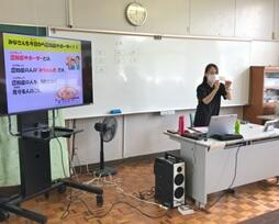 地産地消のお話や、どんな農作物を生産しているのか、なぜこのような事業をしているのか、細田地区には他にどんな魅力的なものがあるのか、、、など、それぞれのお立場から子ども向けにお話してくださいました。先日、「みやざきフードアワード2025」で最優秀賞の「レモン生産者が作ったレモンとサトウキビのシロップ」の飲み物もいただきながら笑う 美味しく楽しく、細田のよいところのお話をたくさん聞くことができました。