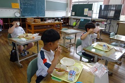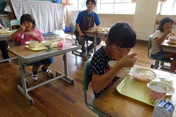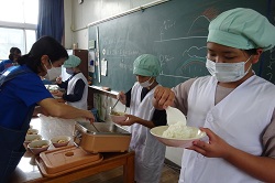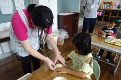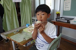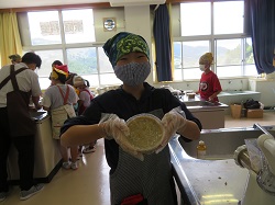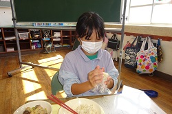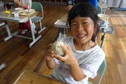 明後日の「お弁当の日」に向けて、今日は1,2年生がおにぎりづくりにチャレンジしました。