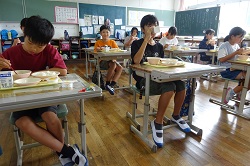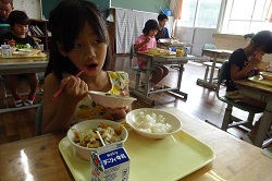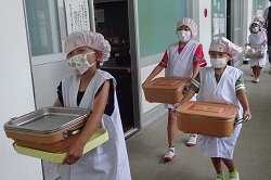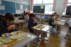 十五夜にちなみ、今日の給食献立は、里芋を使ったおかずやお月様をイメージしたゼリーでした。