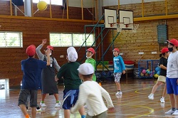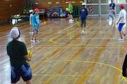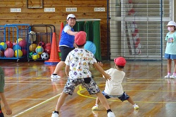 途中からボールが2個になりましたが、みんな上手に受けたり逃げたりできていました。