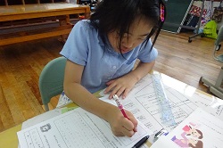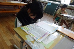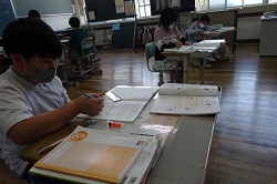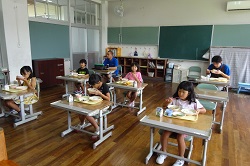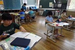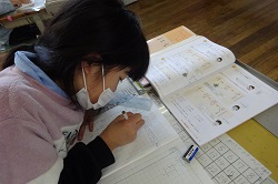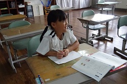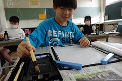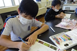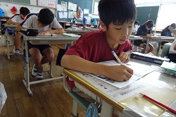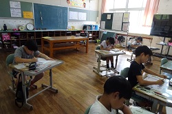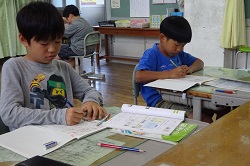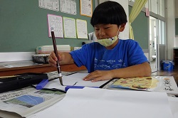 3年生は初めての習字に緊張ですが、4年生は慣れた様子で進めていました。