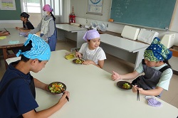 5,6年生が家庭科で、調理実習をしました。メニューは野菜炒めです。