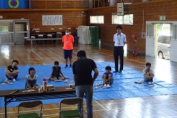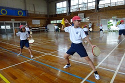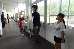 細田中学校3年生のお兄さん、お姉さんと体育の授業を行いました。
