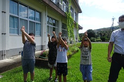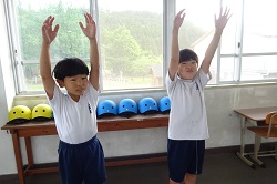 細田小学校の木曜日は、ラジオ体操からスタートします。