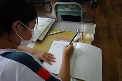 2年生の国語で、説明文を聴いてメモをとったりまとめたりする学習を行っています。