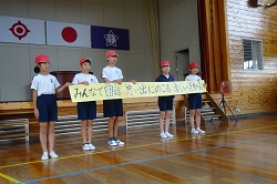 スローガンは、「みんなで団結、思い出に残る楽しい運動会」です。