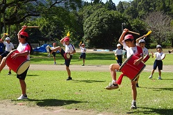 大窪小学校のお友だちと一緒に、合同運動会の結団式を行いました。