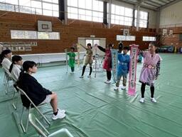 巻物を開いてメッセージを読む係と、「6年生好きぃ~!」と言葉&パフォーマンスで伝える係とに分かれていて、おもしろおかしく、そして心温まる発表でした。