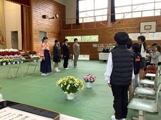 細田小は少ない人数ですが、一人一人が意識をして全員が式に参加するので、練習のたびに姿勢も挨拶も声もよくなっていきます 大変すばらしいことです