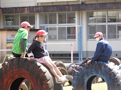 昼休み、運動場で楽しく遊ぶ子どもたちです。