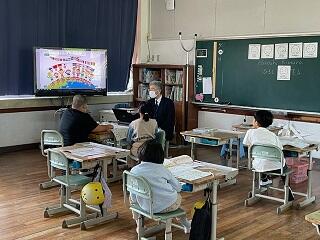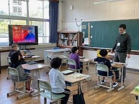 細田小学校では、「外国語、外国語活動」がありました。指導をしてくださるのは、木村先生(吾田小学校との兼務)です。毎週火曜日…3・4年生の外国語活動と5・6年生の外国語、毎週木曜日…5・6年生の外国語と、週に2回ほど指導に来てくださいます。写真は3・4年生の様子です。