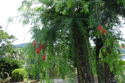 シナタモラドです。ブラシノ木には、ブラシの形に似た可愛らしい赤い花が付いています。アクシナタモラドはバナ