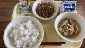 今日の給食は「白ごはん、いもの子汁、牛肉のピリ辛炒め、お月見だんご」でした 季節感があっておしいいメニューでした。 いもの子汁にはサツマイモも入っていて、味にアクセントがりました。お月見だんごまで付いて、テンションが上がりました