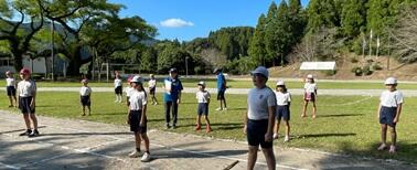1時間目に、全校体育を外で行いましたが、子ども達に朝日が照り付けると、思った以上に暑そうです。