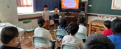 今日は、子ども達がそれぞれの学年で調べたことの「中間発表会」でした。