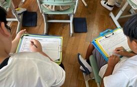メモをしながら発表を聞く子ども達