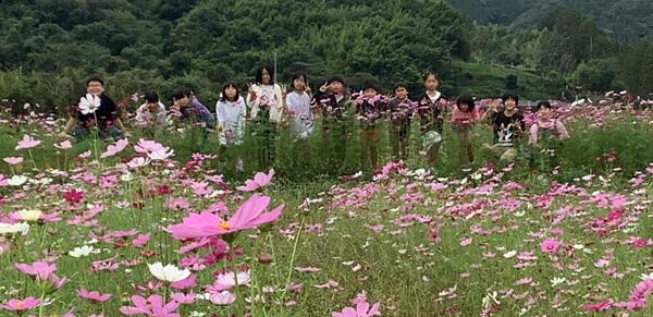 今日は、2校時に、8月末に子ども達が種を蒔いたコスモス畑へ見学に行ってきました。