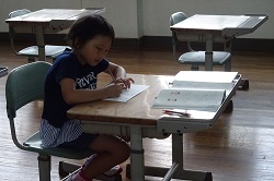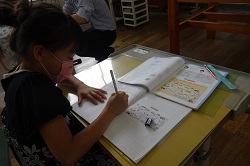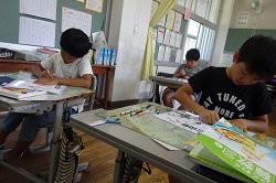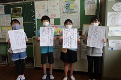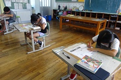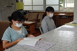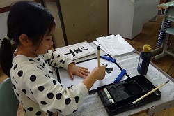 3年生は初めての習字に緊張ですが、4年生は慣れた様子で進めていました。