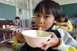今日の給食は、一番の人気メニュー、たたききゅうりと焼き豚ラーメンでした。