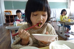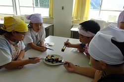 明後日の「お弁当の日」に向けて、今日は1,2年生がおにぎりづくりにチャレンジしました。