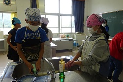 5,6年生が家庭科で、調理実習をしました。メニューは野菜炒めです。