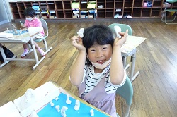 「にぎにぎ ねんど」の課題で、1,2年生はアイデアいっぱいに表現しています。