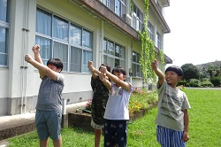 細田小学校の木曜日は、ラジオ体操からスタートします。