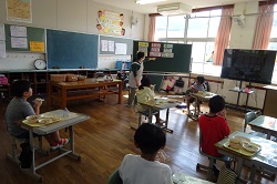 ハロウィンを教材に、外国語活動を楽しんでいる1年生から4年生です。
