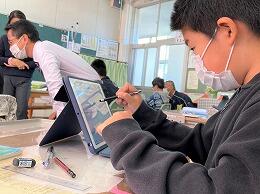 本日の1・2年生の書写の時間です。文字の形に気を付けながら集中しています。