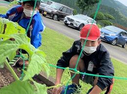本日の5・6年生は、梅雨の合間を見て学級園の花の植え付けや種まきをしています。