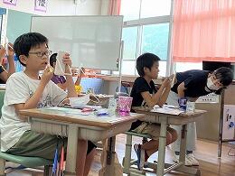 本日の1・2年生の生活科では、身近にあるものを使っておもちゃづくりをしています。みんな試行錯誤を繰り返して工夫しています。