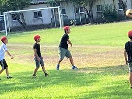 本日の昼休みは、色々な学年が混じり、缶蹴りならぬ「コーン蹴り」で楽しんでいます。