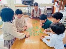 今日、1・2年生はカードゲームをして遊んでいました。トランプの神経衰弱をさらに楽しくしたカードゲームで、子ども達の思考力や記憶力にもよさげなゲームです。子ども達はとても大喜びでゲームをしていました