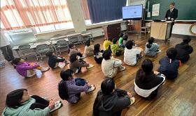 1校時に、3・4年生が日南市のマルマン株式会社を見学してまとめたことを、1・2年生に発表しました。全員が、ロイロノートという学習アプリを使い、プレゼンテーション資料を作成し、それをTV画面に投影しながらの発表です。どの子も、説明文だけでなく、写真やイラスト、クイズなどを取り入れ、それぞれに工夫を凝らした発表をしていました。1・2年生は、クイズに喜んで手を挙げ、最後の感想では、「自分も3・4年生になったら、今日みたいに発表したい!」ということを発言する子もいました。発表者の3・4年生も、聴く側の1・2年生もすばらしい