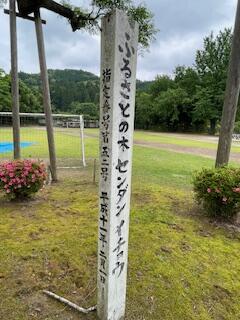 栴檀の(せんだん)の近くに行って、写真を撮ってみました。幹の真ん中に大きな穴が空いていて、修復の跡があります。「ふるさとの木 センダン イチョウ」と書いた標柱も立っています。改めて、歴史を感じます。