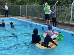 子ども達はもちろん大喜びです。ボールや浮き輪やフロートに、水鉄砲、大人やお兄さんお姉さん方に見守られながら思いっきり遊ぶことができました。最後は、流れるプールと大波づくりをして終了しました。(※大波はうまくできなかったので、来年はビッグウェーブを成功させます!?)